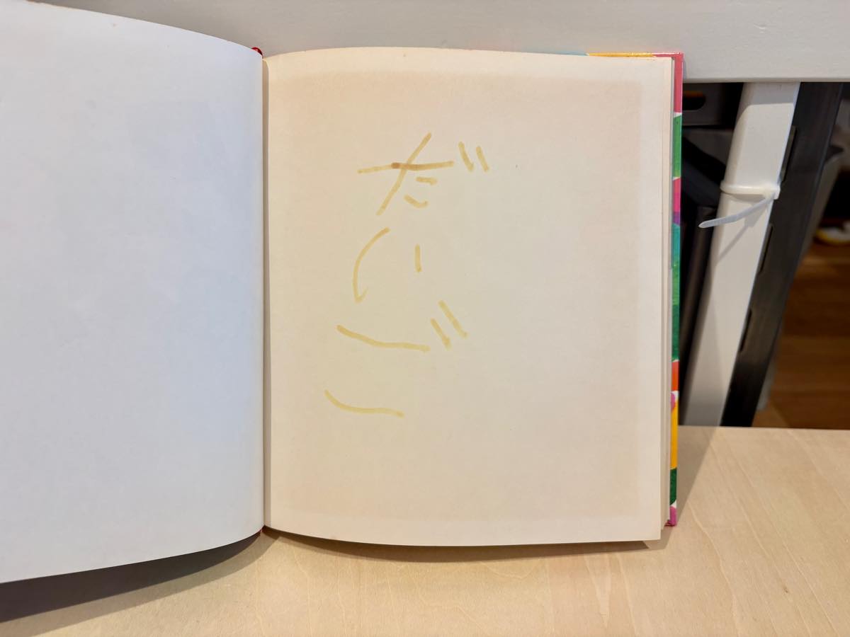おいもは絵本棚に入っているので、私のサイン入りなのが気に入らないのでしょうか?