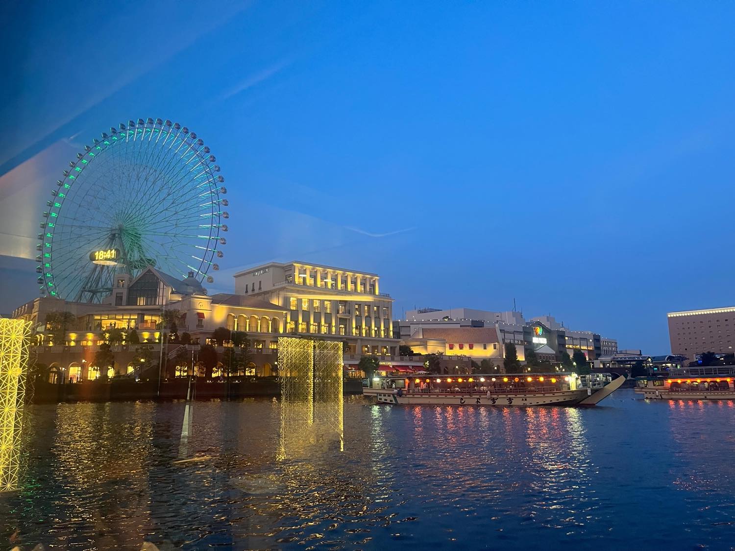 東京湾やお台場などを周る遊覧コースで、綺麗な夜景を見ながらご飯やお酒をいただくのですが、今回は私の地元みなとみらいで屋形船を堪能しました。