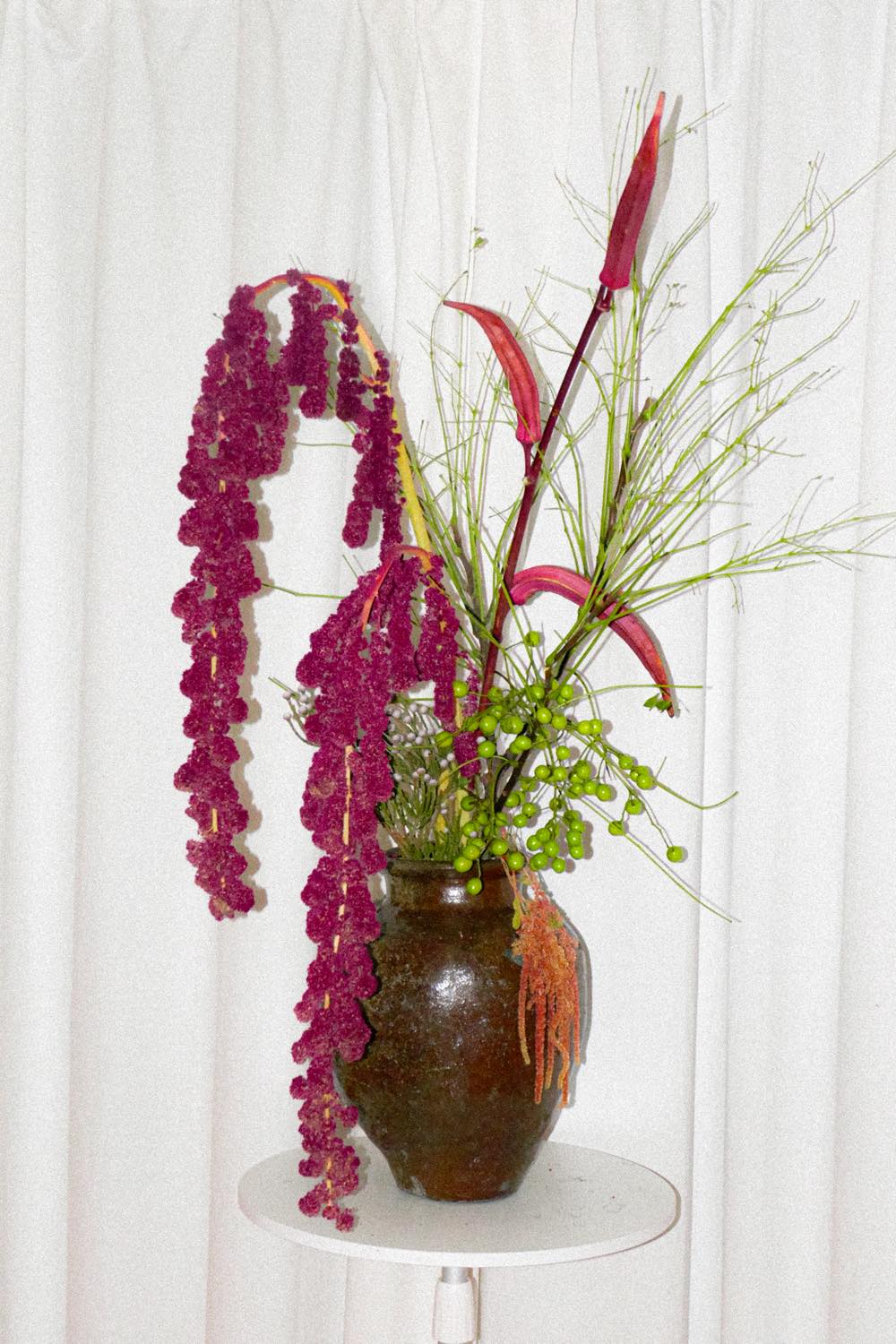 最近の休日は、個性豊かな花材を選び、自由でダイナミックな“投げ入れ”に挑戦するのが、何よりの楽しみになっています。
