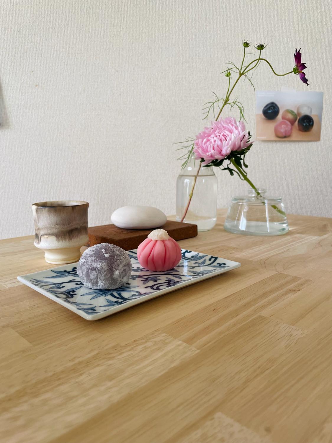 卓上が整ったところで、さっそく和菓子をいただきます。