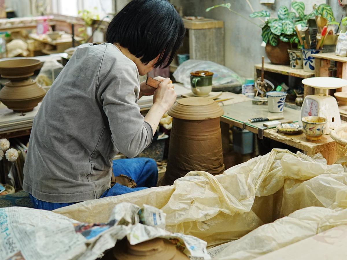 高速でろくろを回し、小刀のようなもので一気に仕上げます。