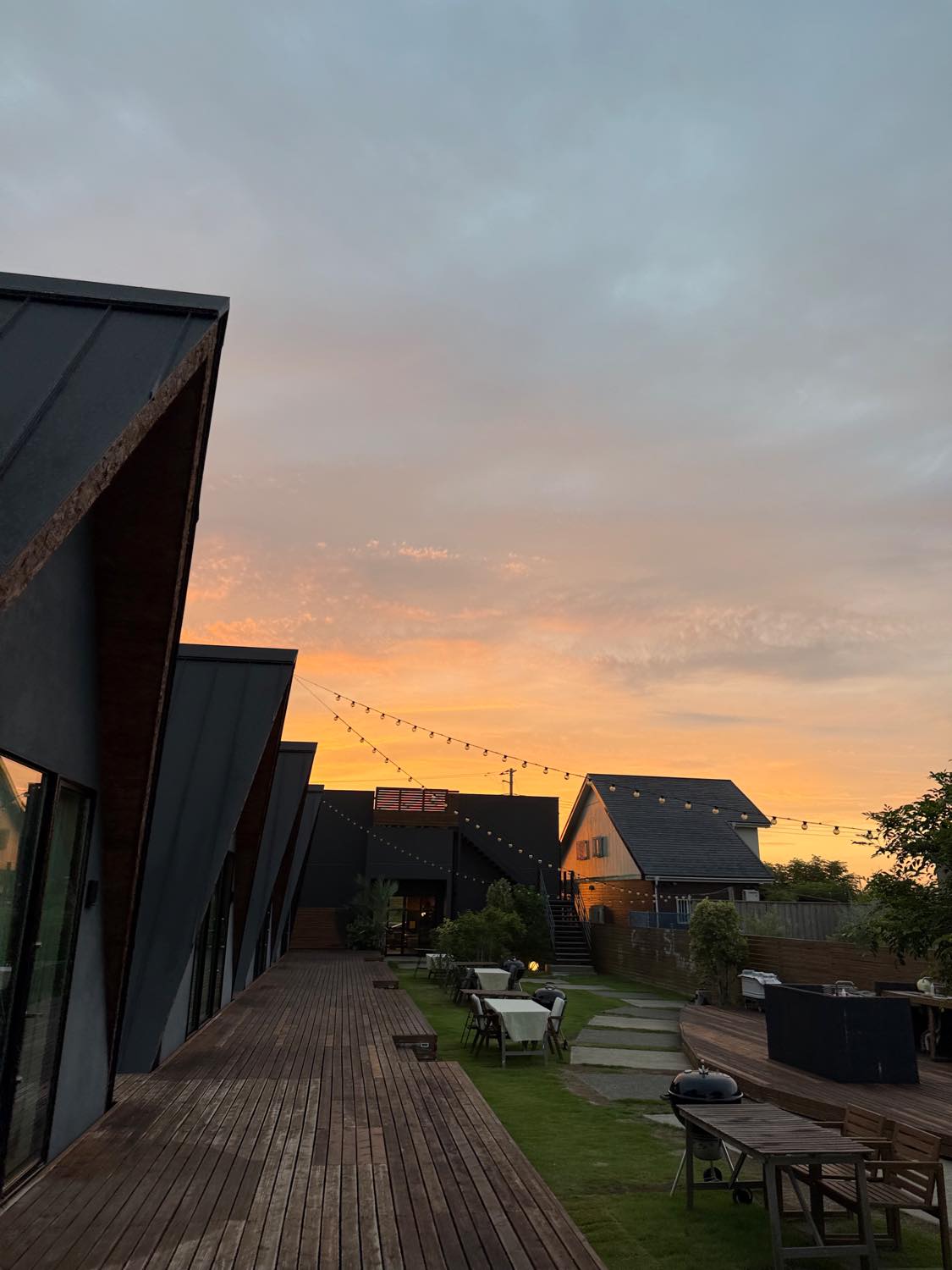 それぞれの客室の前に専用のBBQセット、ダイニングスペースがあります。