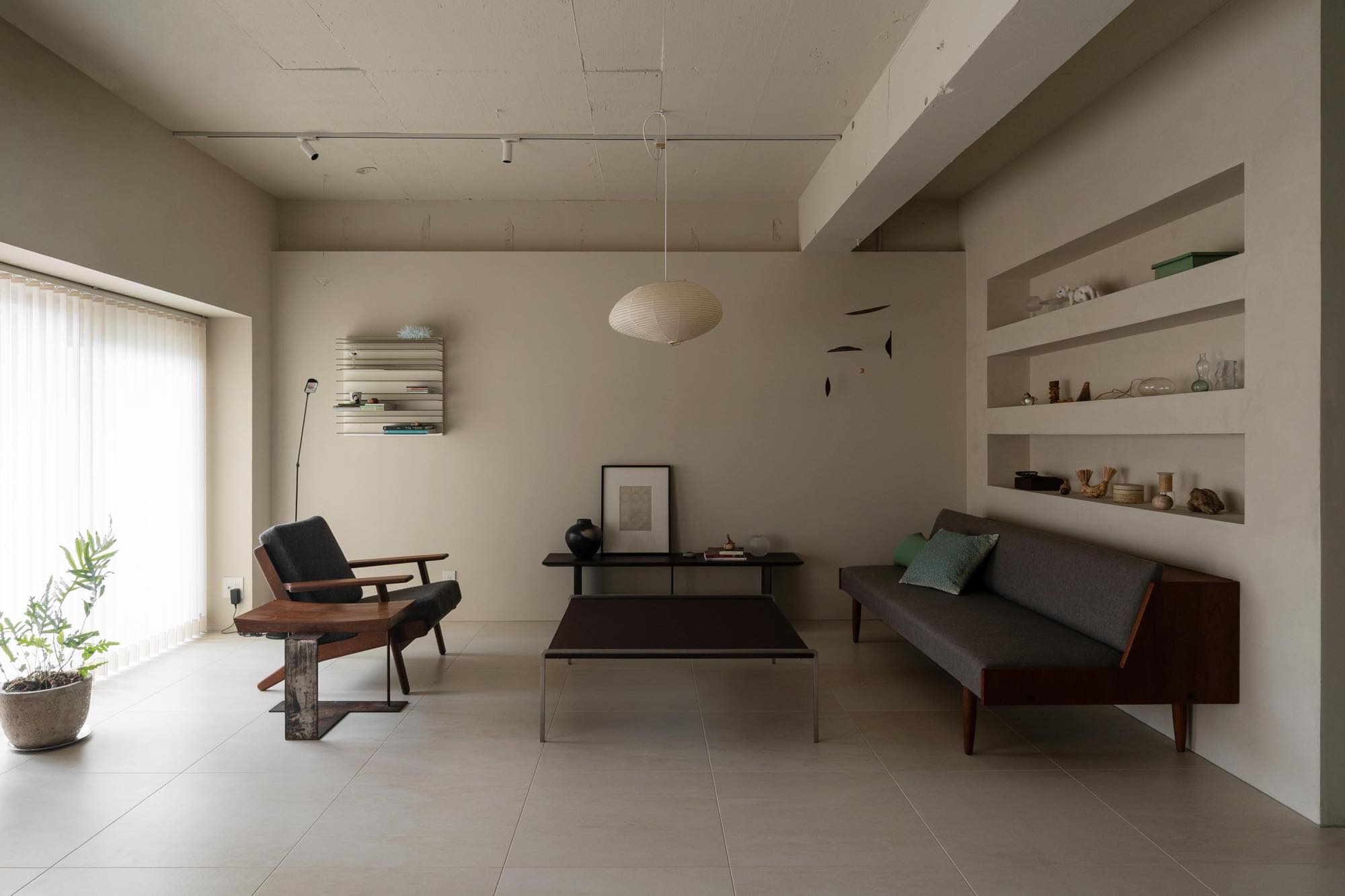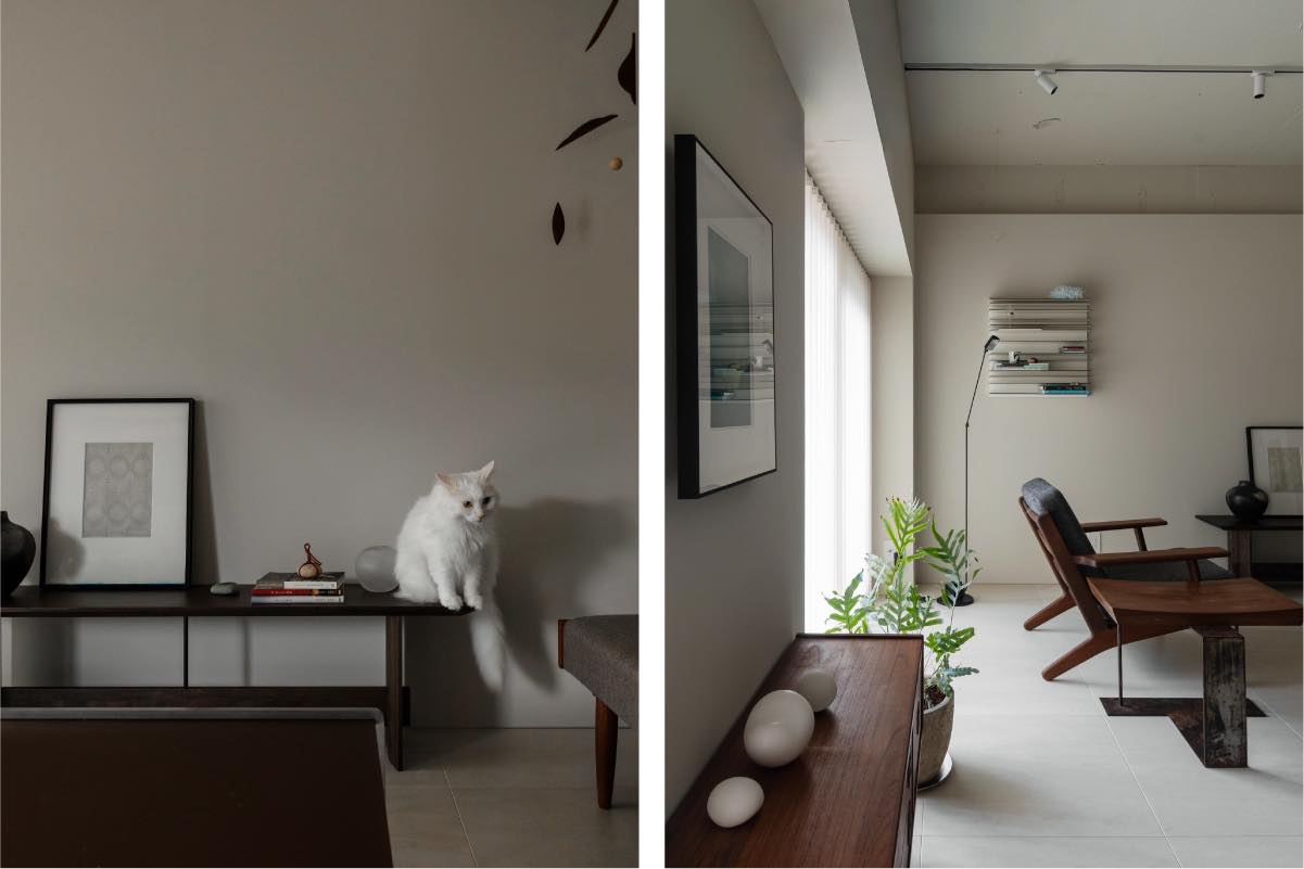 国や時代の異なる家具が混在しながらも素材やトーンが調和していることで、意図された“ゆらぎ”が心地よいリズムを生み出しています。