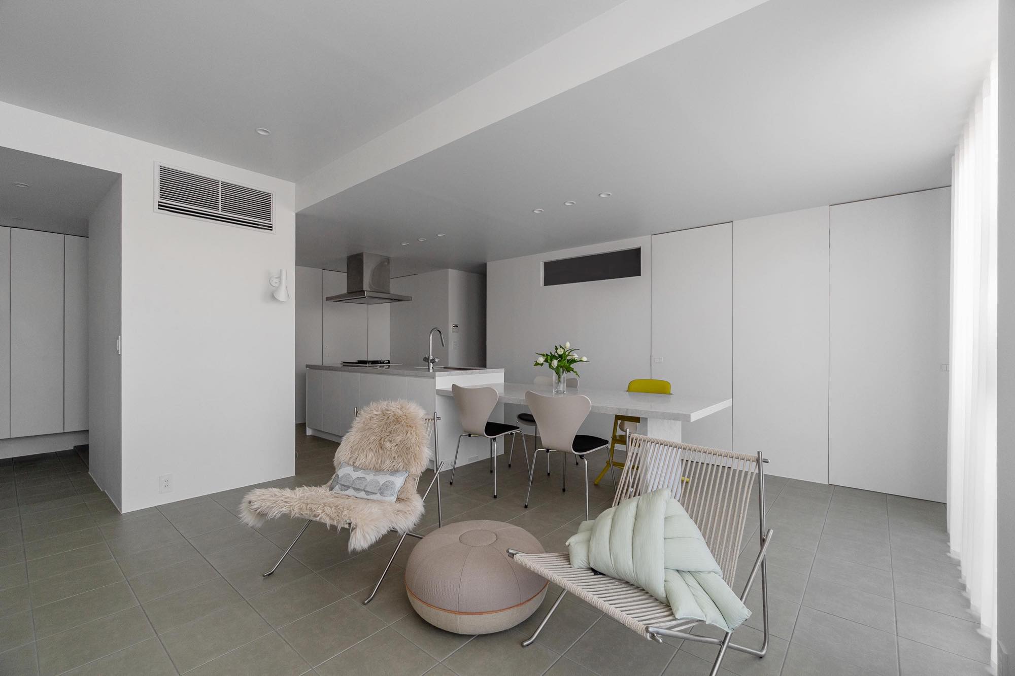 ダイニングにはアルネ・ヤコブセンの名作<セブンチェア>を合わせています。
