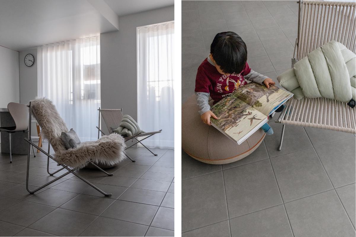 ソファを置く案もありましたが、余白がたっぷりある感じを維持したいと夫婦で話し合い、今の形に落ち着きました。