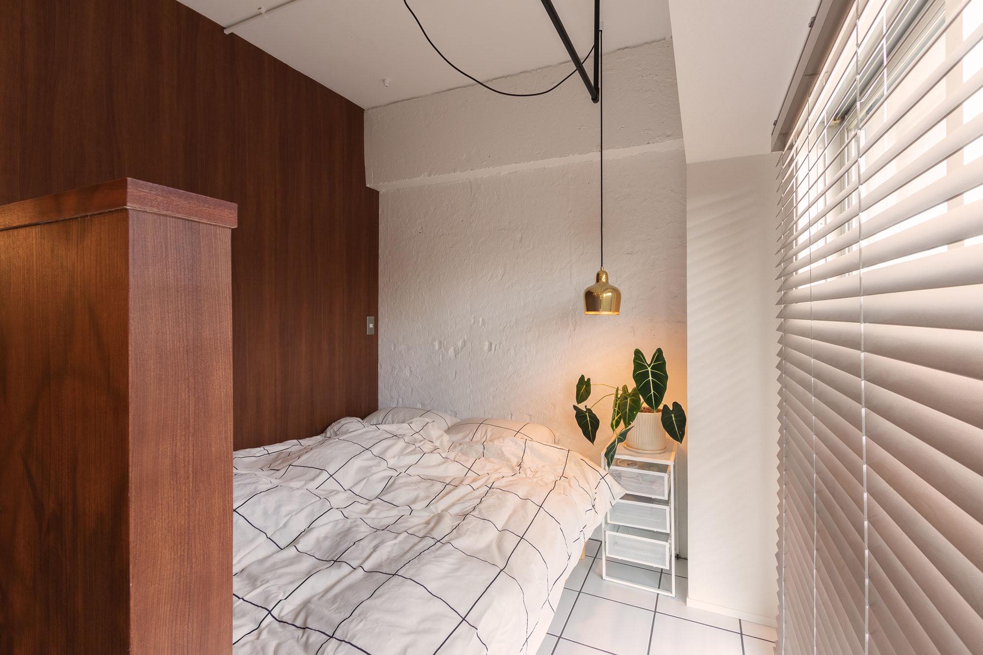 また、寝室のペンダントライトはアアルトの名作<ゴールデン・ベル>。