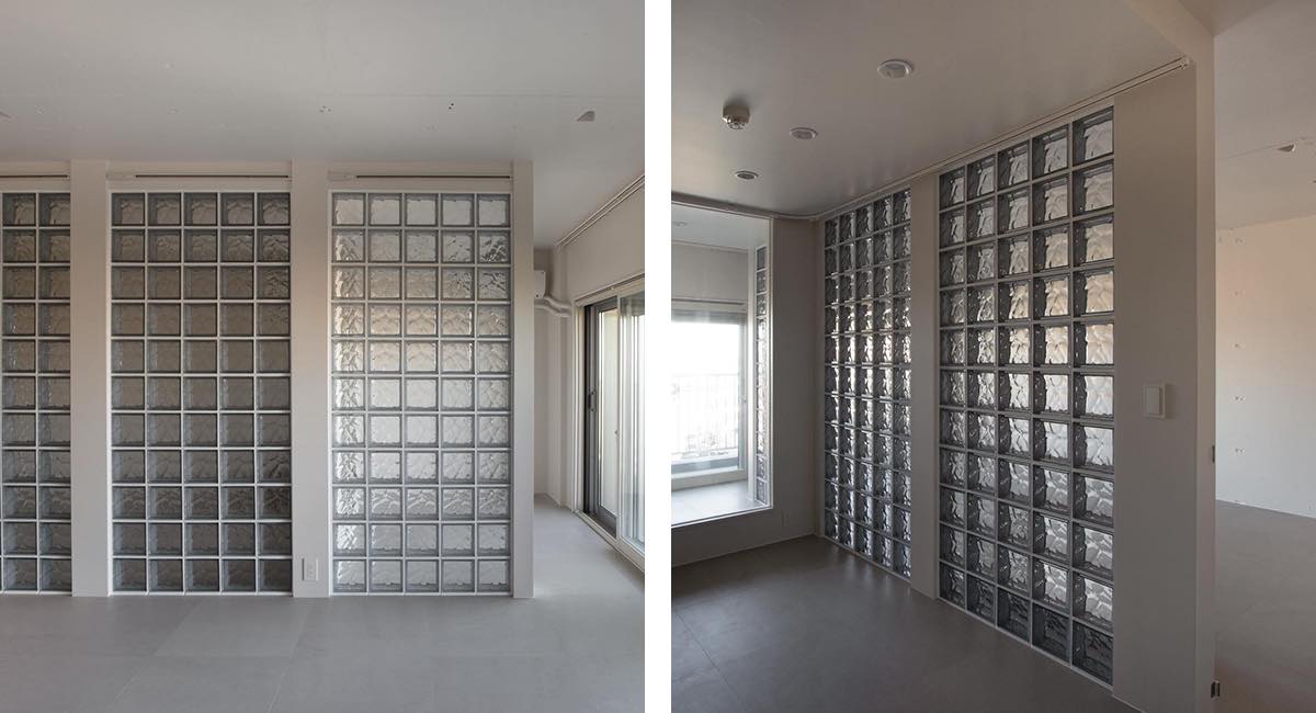 →パーティションとしてガラスブロックを用い、光を取り込みつつ視線を遮ります。