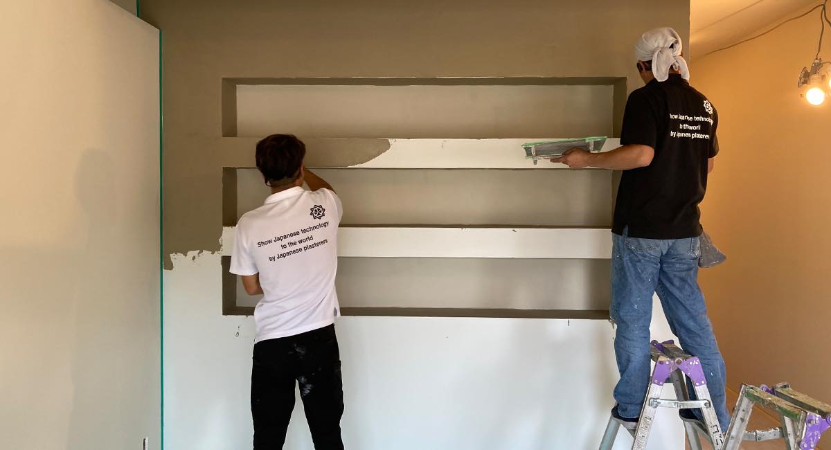 ▽左官工事中の様子