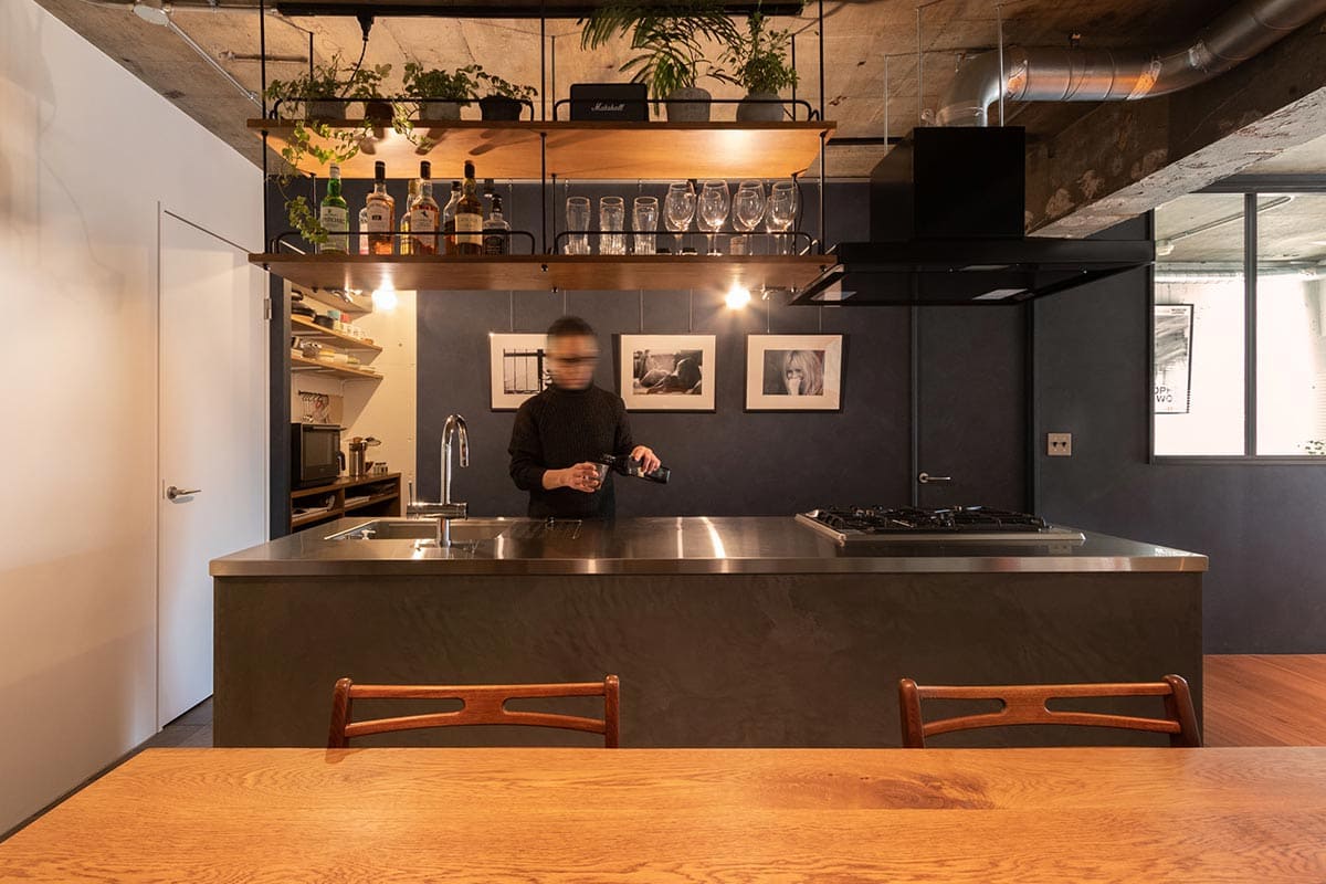お酒を飲むのが好きで、リノベーションで造作アイランドキッチンを中心とした空間をつくりあげました。
