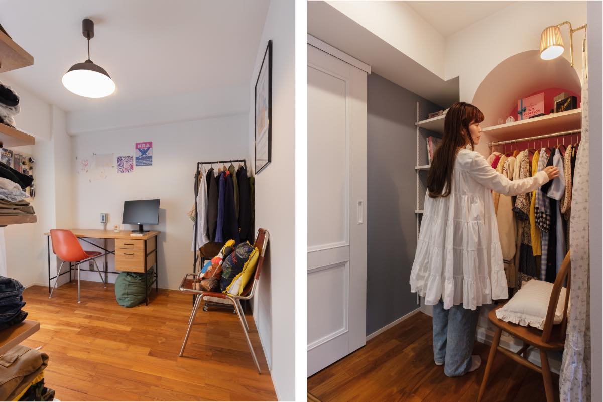 身支度動線も寝室からなるべく離し、生活リズムの違いをカバーしました。