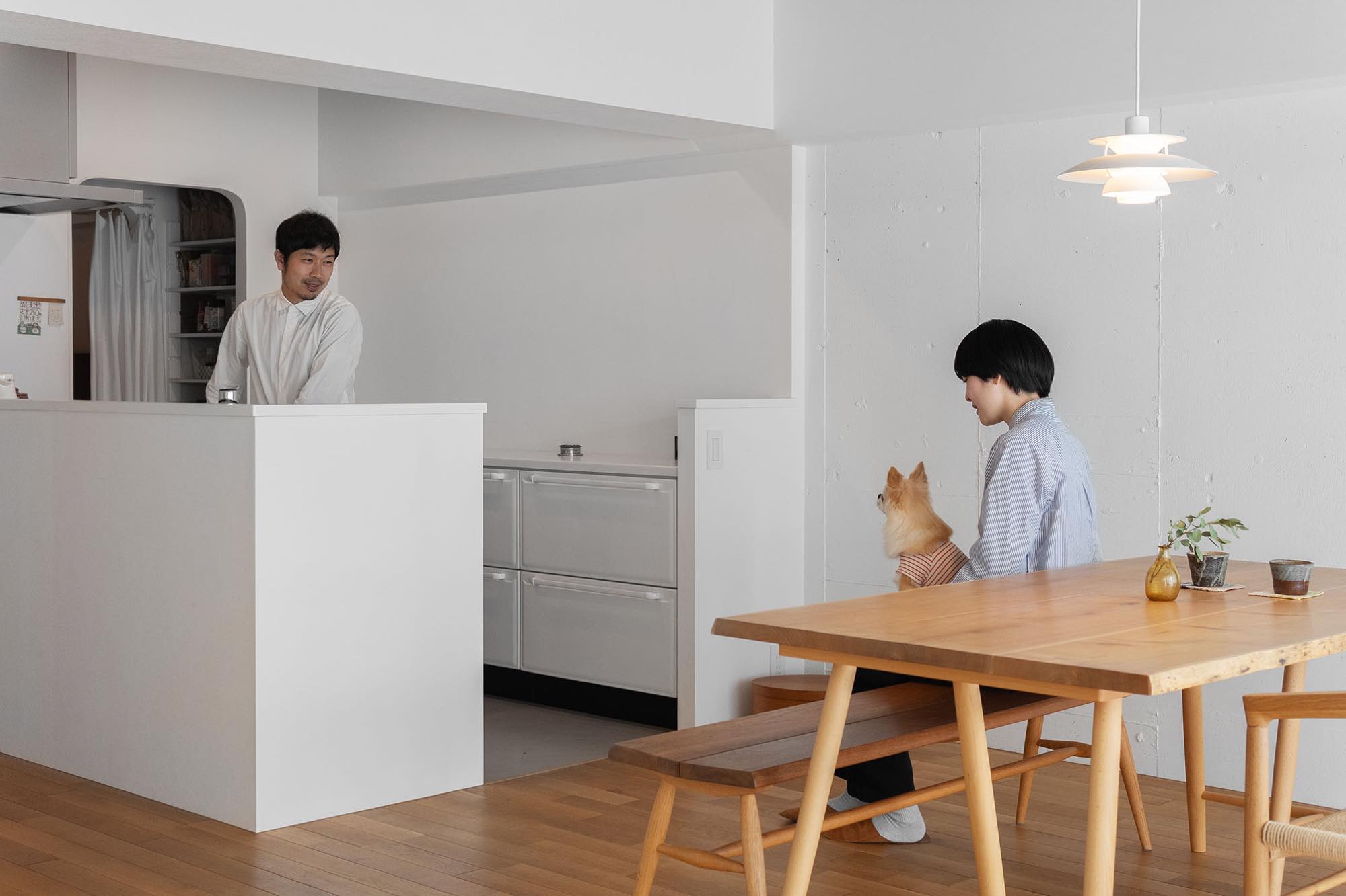 いっしょにテレビを見たり、ご主人はバルコニーで日光浴を楽しんだりと、どの場面も心地よい距離感で過ごせる空間です。