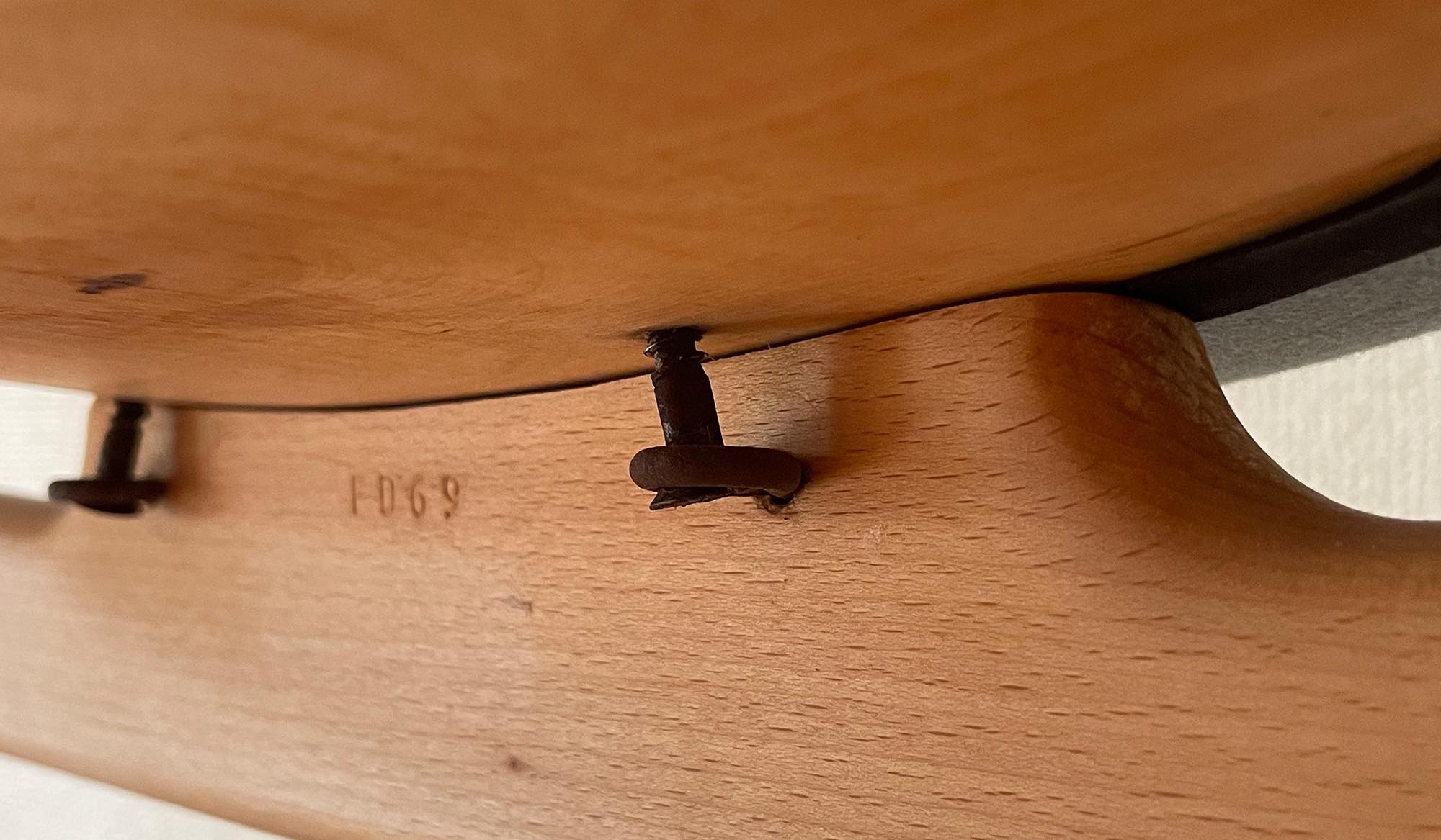 脚部や座面はきれいにリペアされ、木本来の経年変化は見られますが、使い心地や肌触りは非常に良いです。
