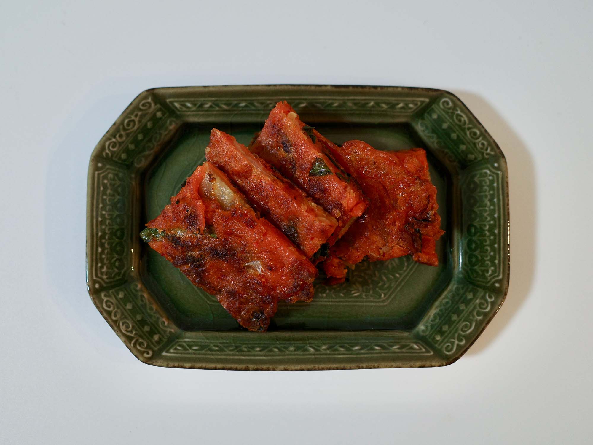 チヂミ、だし巻き卵、キャロットラペなど、いろんな国の料理を盛り付けてみましたが、どれも自然と似合います。