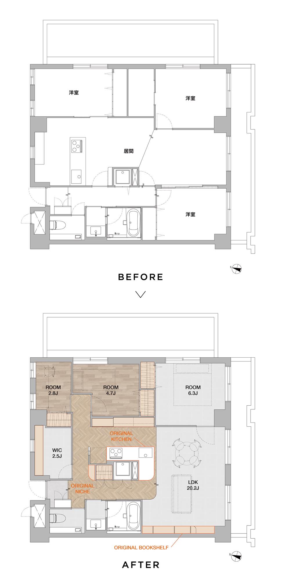 極上の「おかえり」玄関を入ってすぐの景色が一番のお気に入りになるように。そんな思いでつくり上げた回遊動線のコアとなる場所は、ニッチ収納やキッチンを抱き込んで機能的なボリュームに。カラーやトーンを統一し、洗練された空間を目指しました。