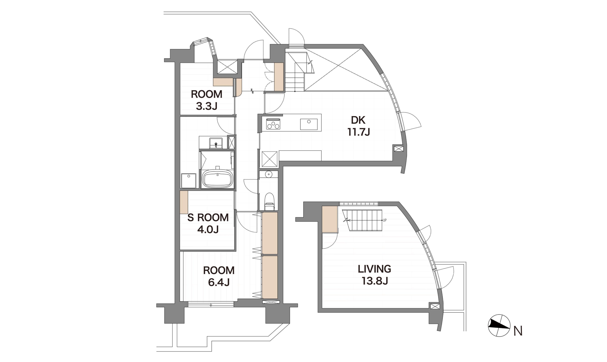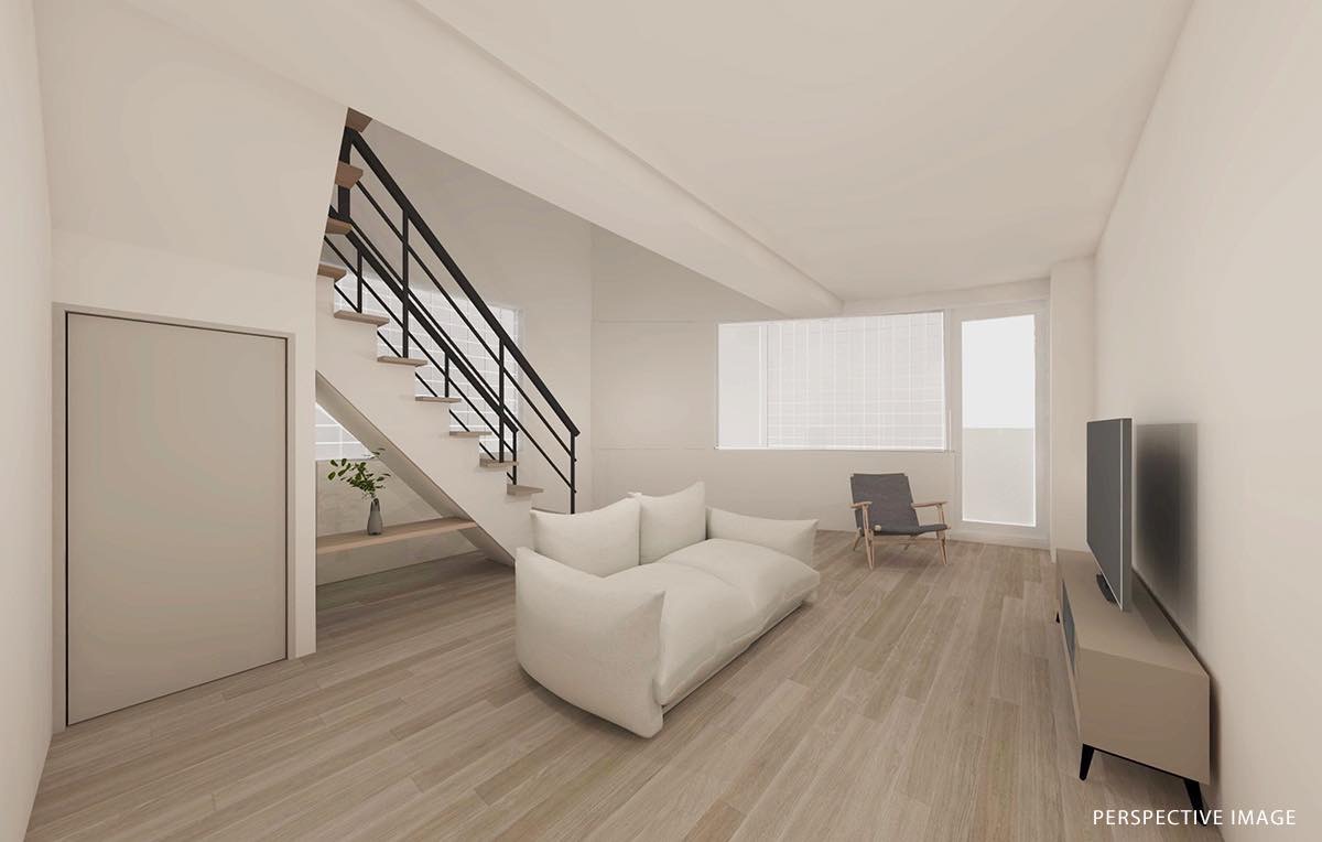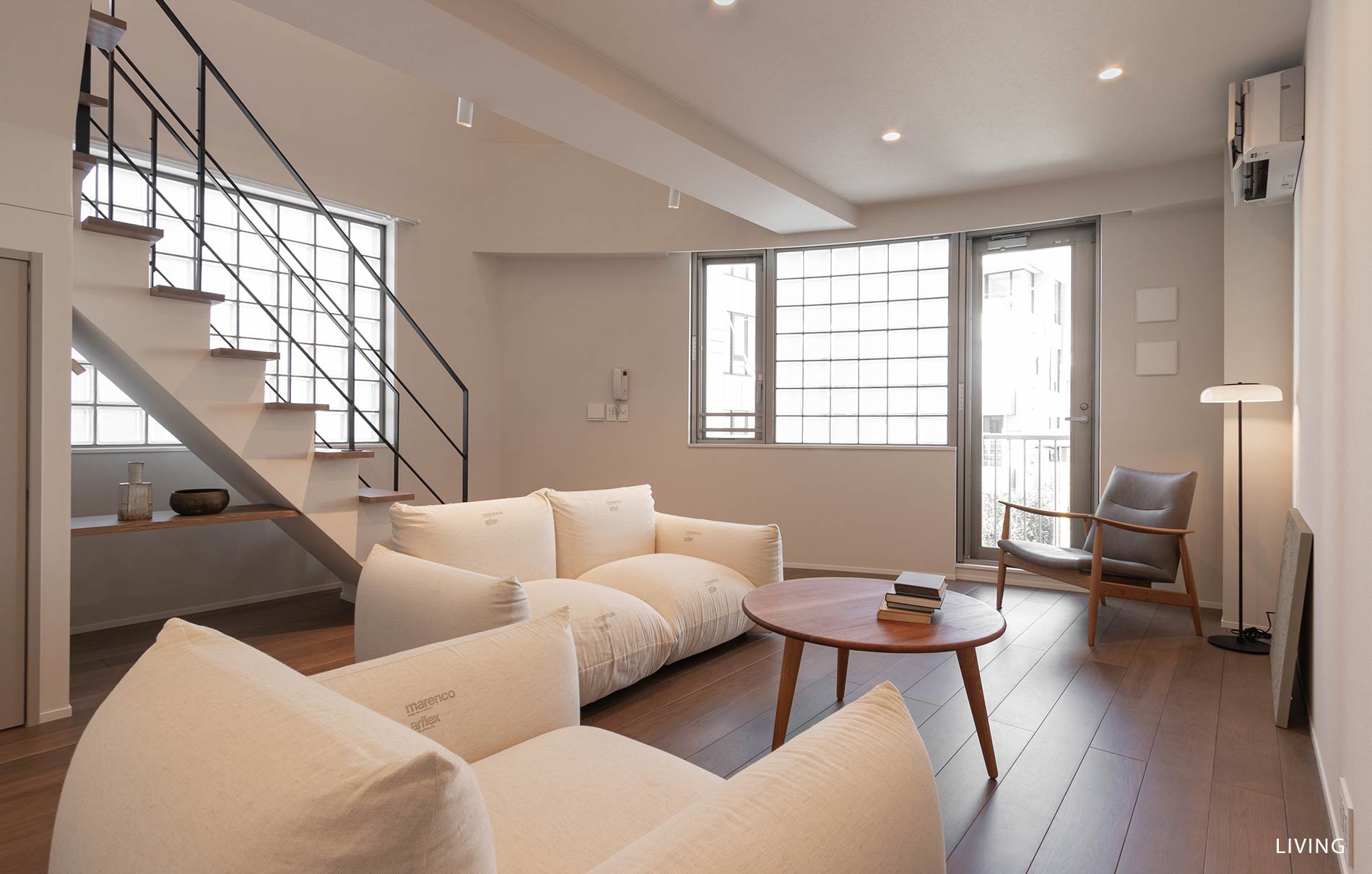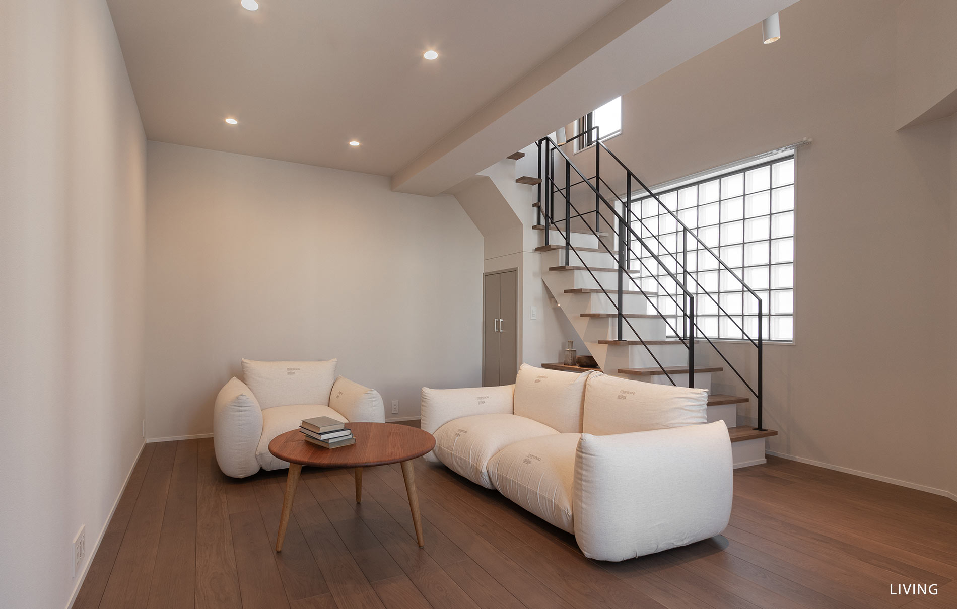 メゾネット特有の開放感と落ち着きを享受する、光と静けさを纏う住まいです。
