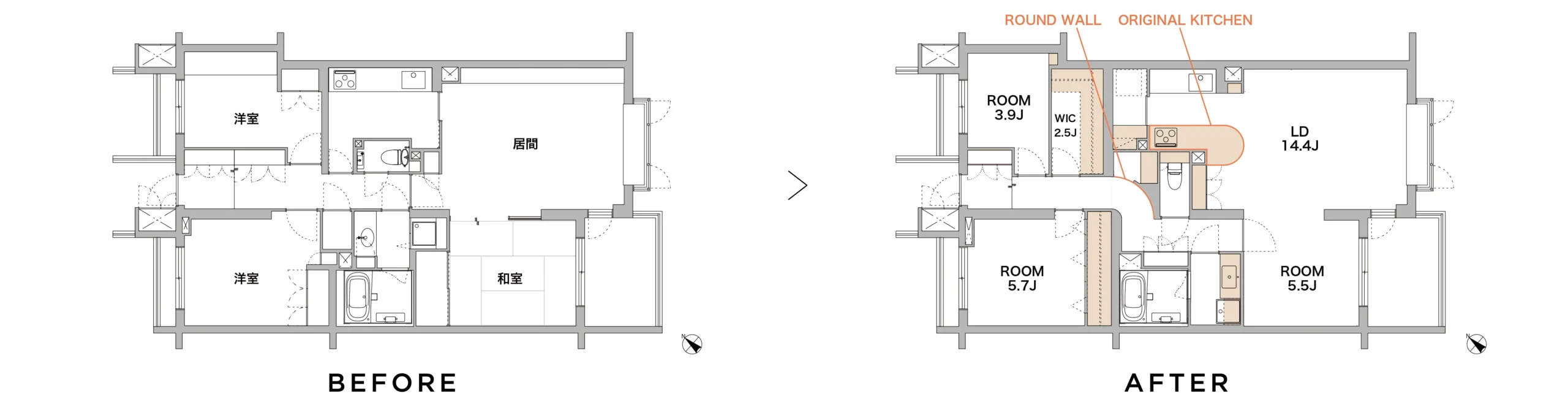 所在地 東京都世田谷区 間取り 2LDK+P+WIC 築年数(完工時) 1997年7月(築27年) 広さ 85.12㎡ 家族構成 DINKS リノベーション工事費 2,130万円 竣工年月 2025年7月 建物種別 マンションリノベーション -
