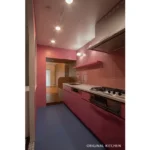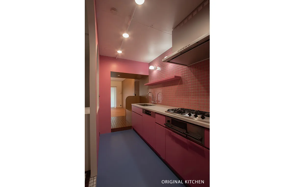 落ち着いた雰囲気のリビングとは対照的に、キッチンや居室は好きな色で自由に彩り、