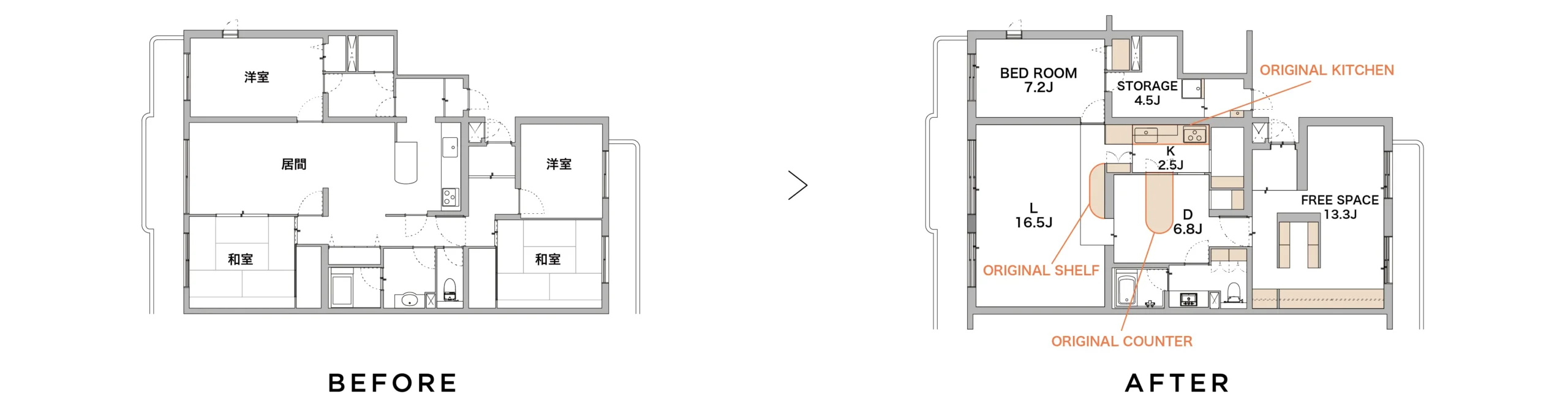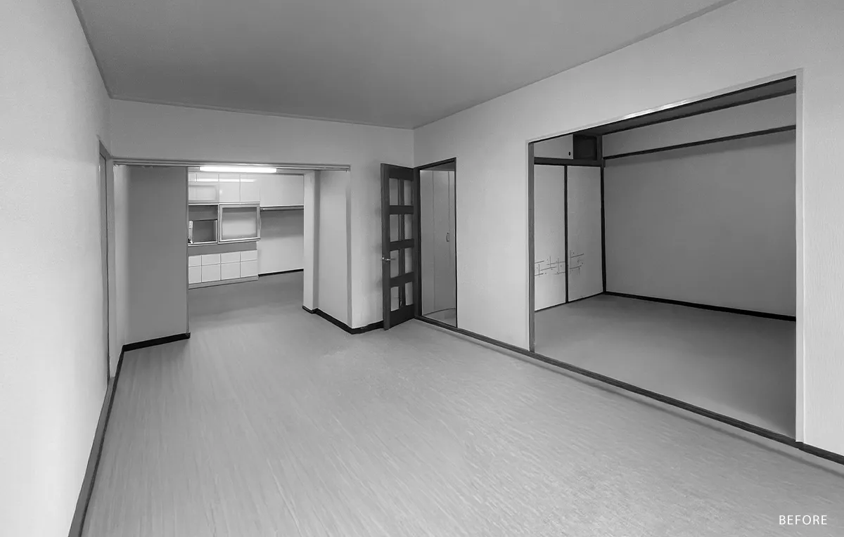 所在地 神奈川県茅ヶ崎市 間取り 1LDK+FS 築年数(完工時) 1982年2月(築42年) 広さ 105.39㎡ 家族構成 DINKS リノベーション工事費 2,970万円 竣工年月 2025年8月 建物種別 マンションリノベーション -