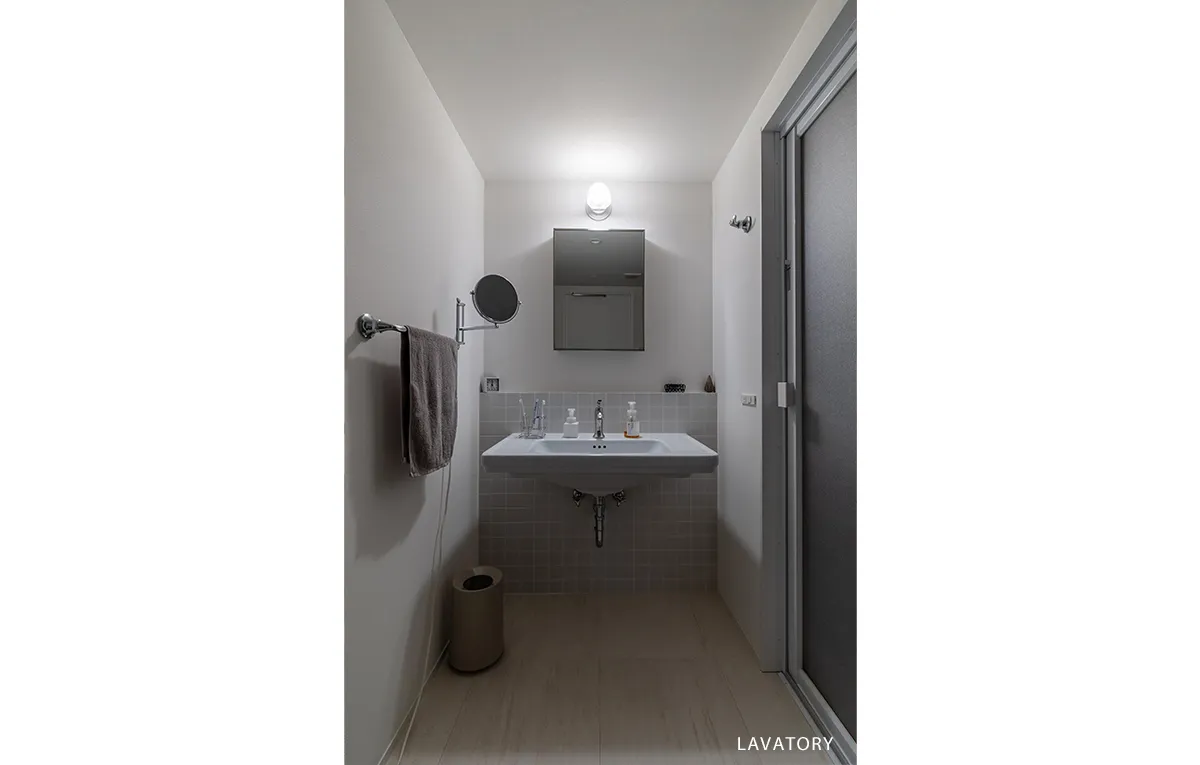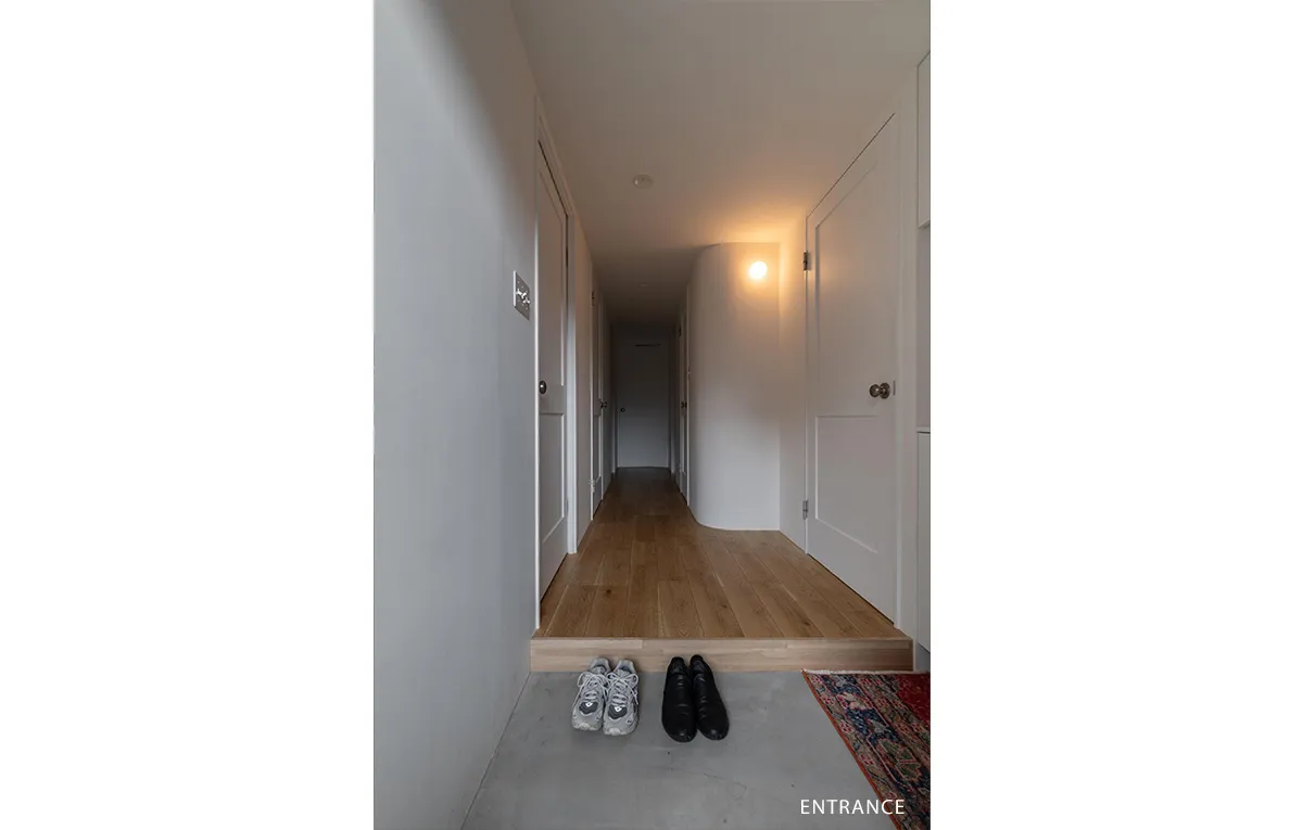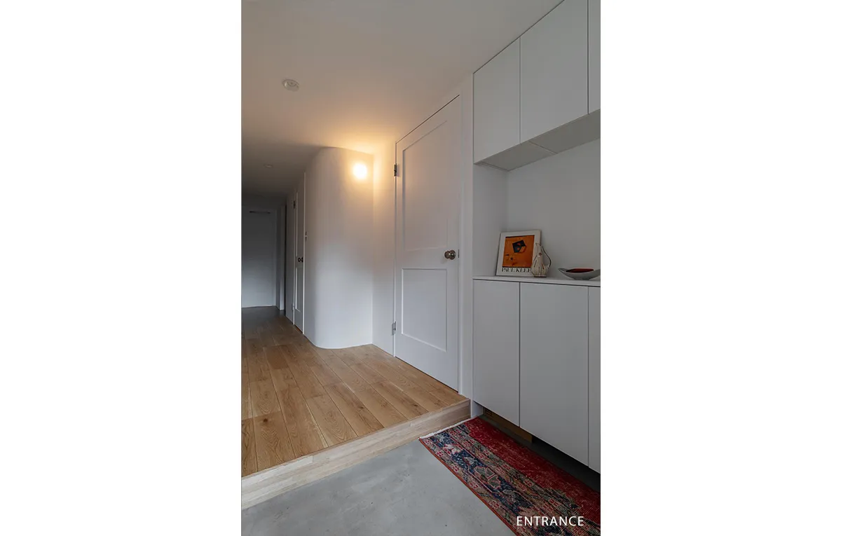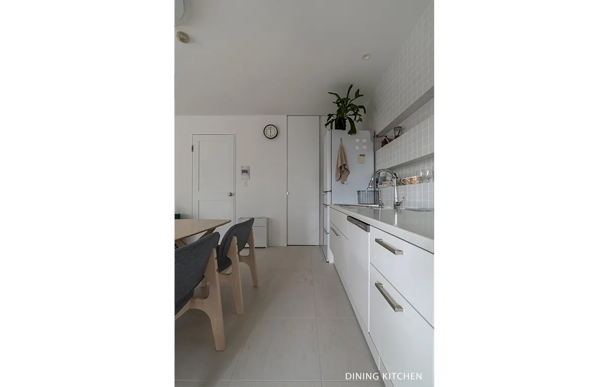 さまざまな質感の白を持ち寄り、シンプルな意匠を追求した2LDK。