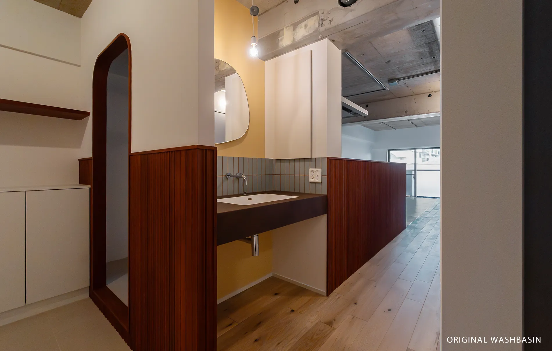 ミニマルデザインで設えた“ウラ”のファンクションスペースとのメリハリを持たせました。
