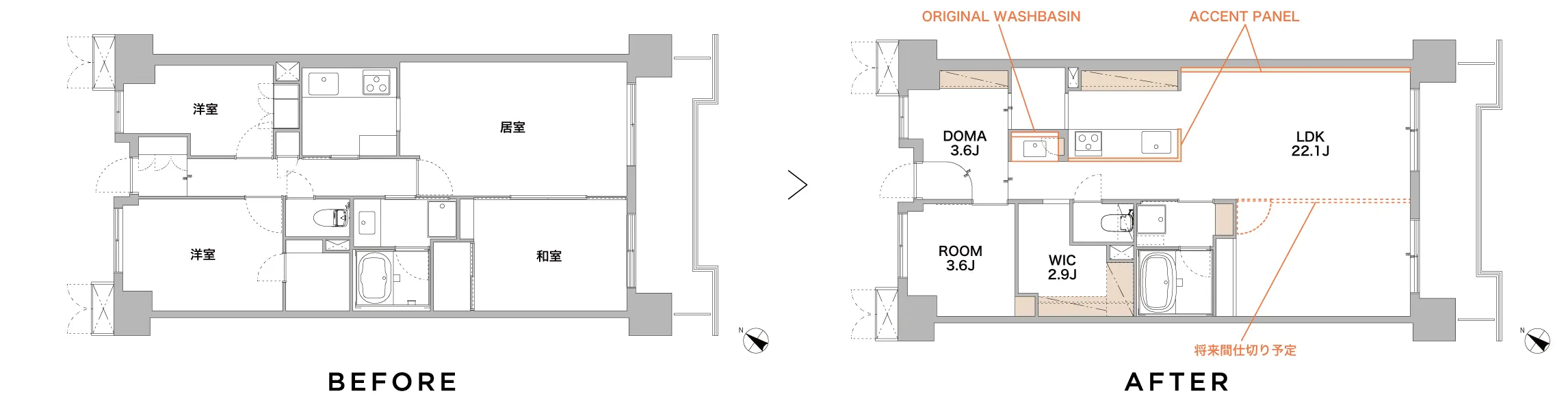所在地 埼玉県さいたま市 間取り 1LDK+WIC+土間 築年数(完工時) 1994年7月(築31年) 広さ 65.90㎡ 家族構成 DINKS リノベーション工事費 1,870万円 竣工年月 2025年12月 建物種別 マンションリノベーション -