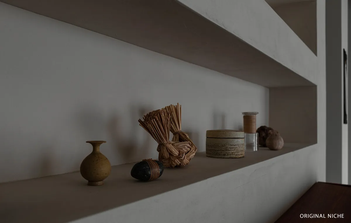 粒選りの器やアートを飾るためのニッチ収納を設えました。