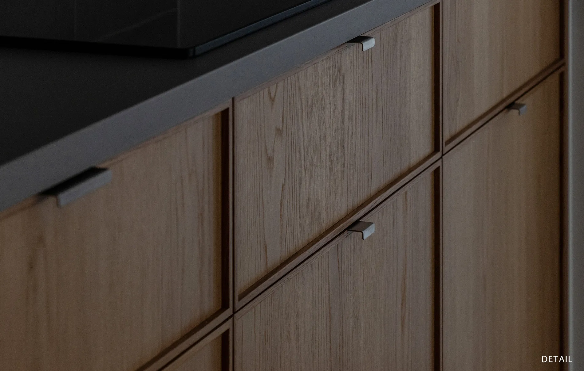 木をたっぷり取り入れ、素材のコントラストが生む温かな空気感を演出しました。