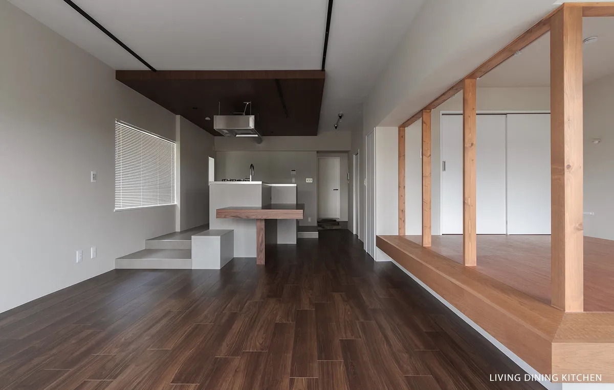 家の随所に段差を設け、シーンの切り替わりを軽やかに演出しました。