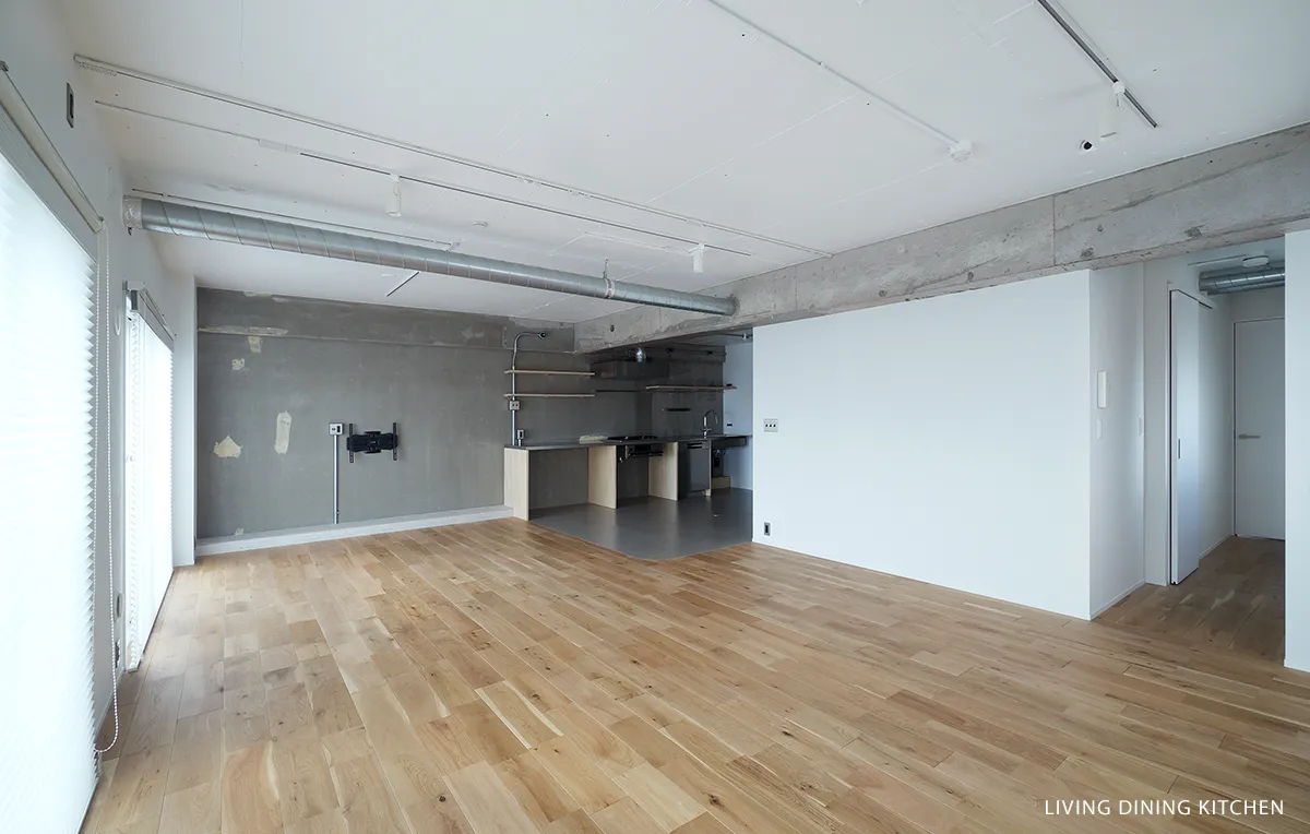MARUGOTO マンション 中古マンション 東京都 墨田区 80㎡〜90㎡ 1LDK〜 2000万円〜 無機質 おしゃれ ラフ インダストリアル 床 壁 / 天井 キッチン 造作キッチン リビング / ダイニング トイレ 寝室 洗面台 / 化粧室 造作洗面化粧台 玄関 / 土間 洋室 収納 パントリー ドア 引き戸 躯体現し モルタル ステンレス 壁紙 / クロス 塗装 磁器質タイル 塩ビタイル オーク