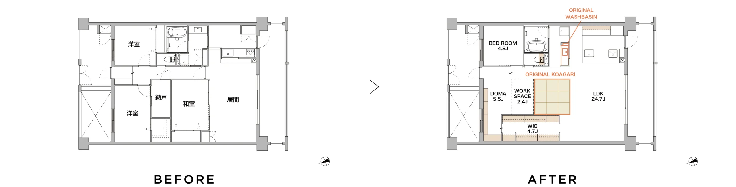 所在地 東京都東村山市 間取り 1LDK+WIC+DOMA 築年数(完工時) 2002年2月(築22年) 広さ 85.68㎡ 家族構成 DINKS リノベーション工事費 2,140万円 竣工年月 2025年4月 建物種別 マンションリノベーション -