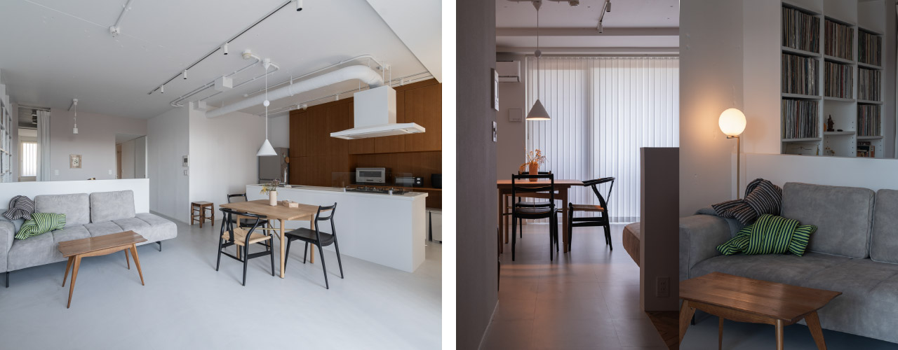 「朝ブラインドから光が差し込んだり、コンクリートの壁に光の陰影ができたりするのが、めちゃくちゃエモいです。リビングに余白を贅沢に持たせたのも、こういうことを楽しみたかったからなんですよ」と、ご夫婦。最後に、リノベの総括を伺うと…。