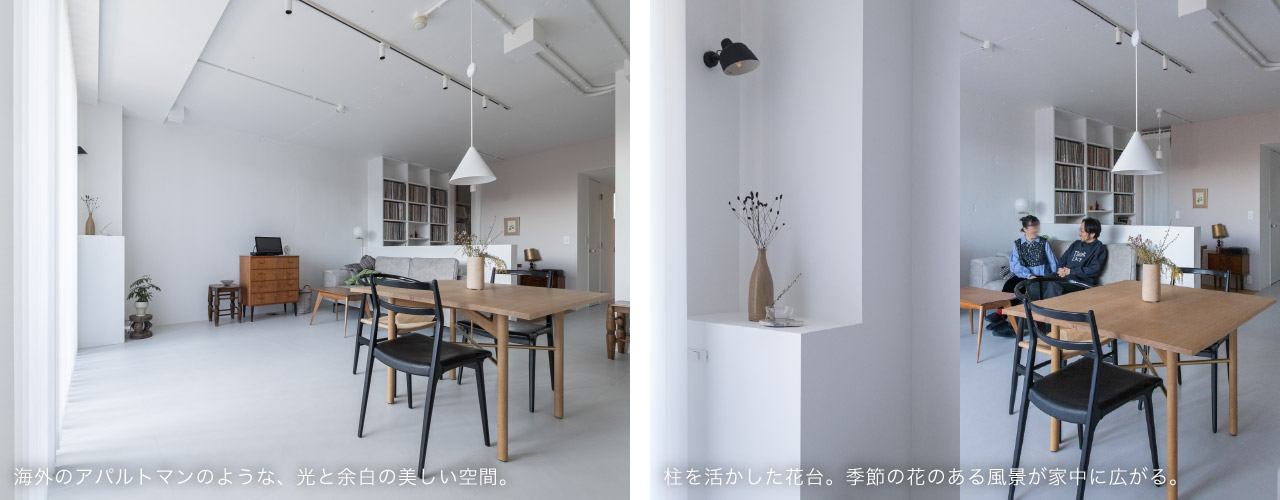特に奥様は、「夫婦ともにワーカホリックですし、私は仕事用の事務所に泊まることもあるので、家は心身を休める場所にしたかったですね。あと、切り花を生ける余裕のある暮らしにあこがれていました」と話します。